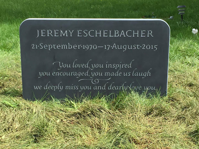 For as horrifying as this whole thing has been, I am peacefully content in how this honors him. I know 100 years from now, a cemetery stroller would be able to understand how special this human being, this son, husband, father, friend, uncle, teacher, runner, soccer player, coach, Jeremy Eschelbacher, was.